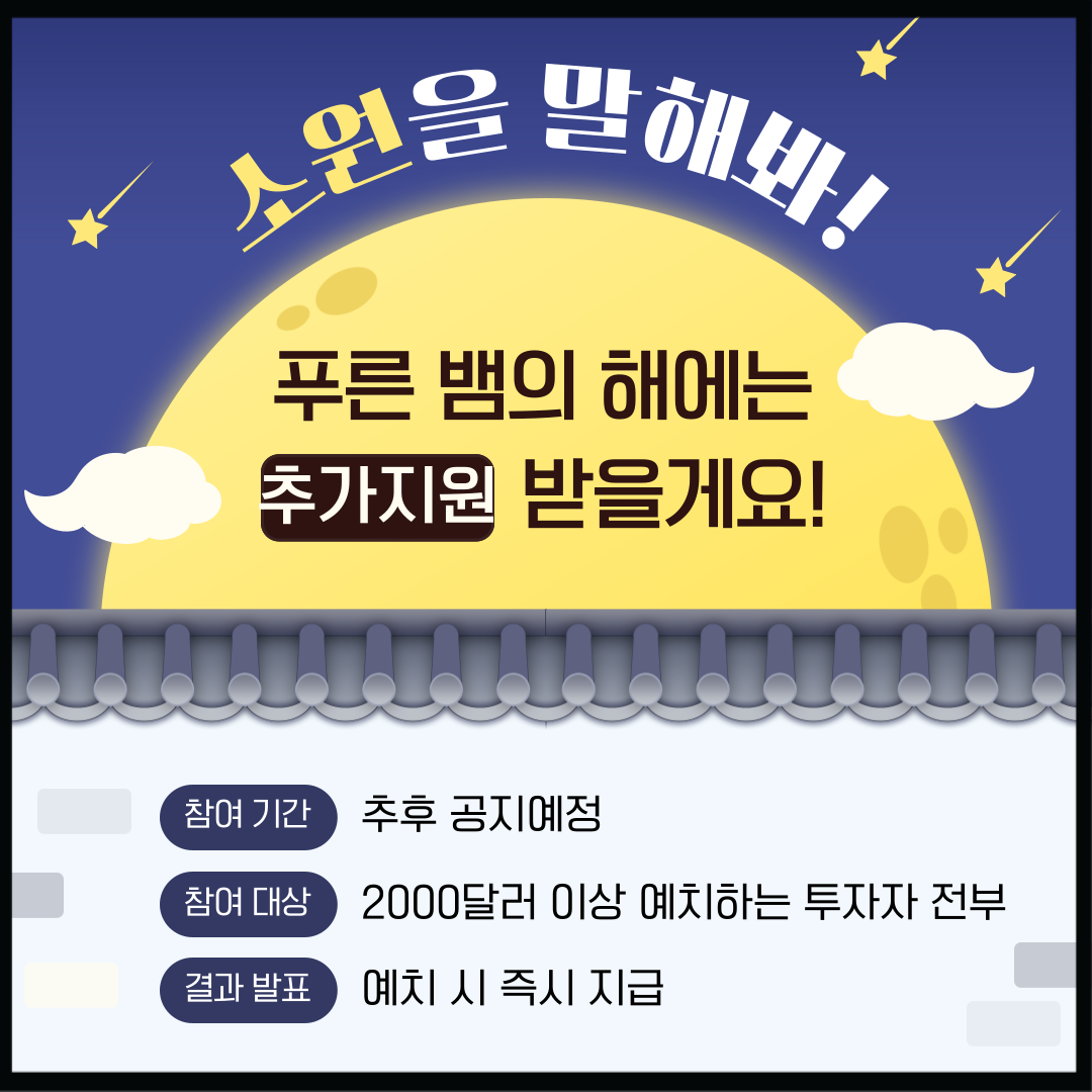 이번 이벤트는 단순한 프로모션이 아니라, 여러분의 성공적인 투자를 위한 지원입니다. 새로운 도전과 함께 2025년을 더 특별하게 만들어보세요.