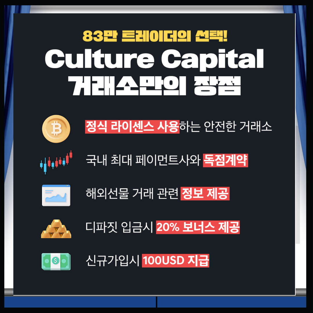 📢 지금 바로 컬쳐캐피탈 해외선물거래소를 경험해 보세요!