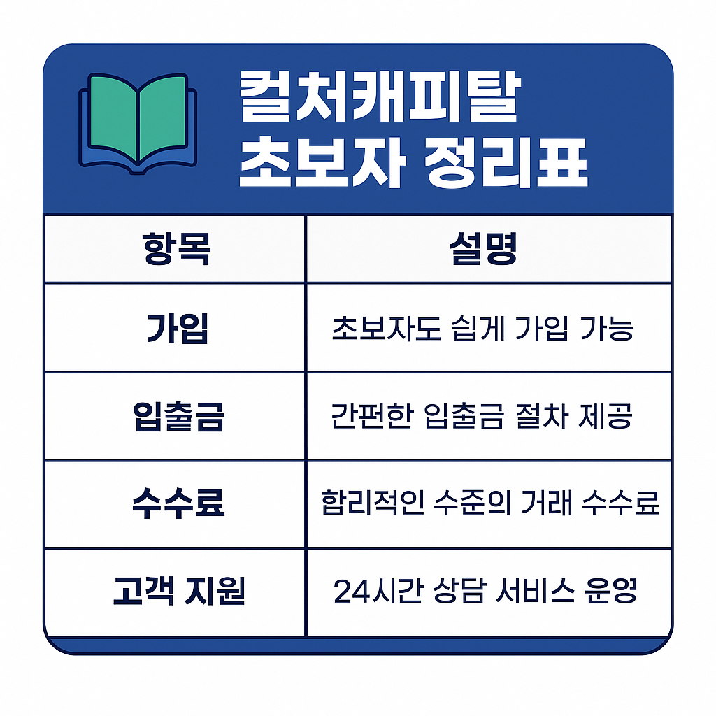 컬쳐캐피탈, 초보자에게도 유리한 거래 환경으로 준비되어 있습니다.