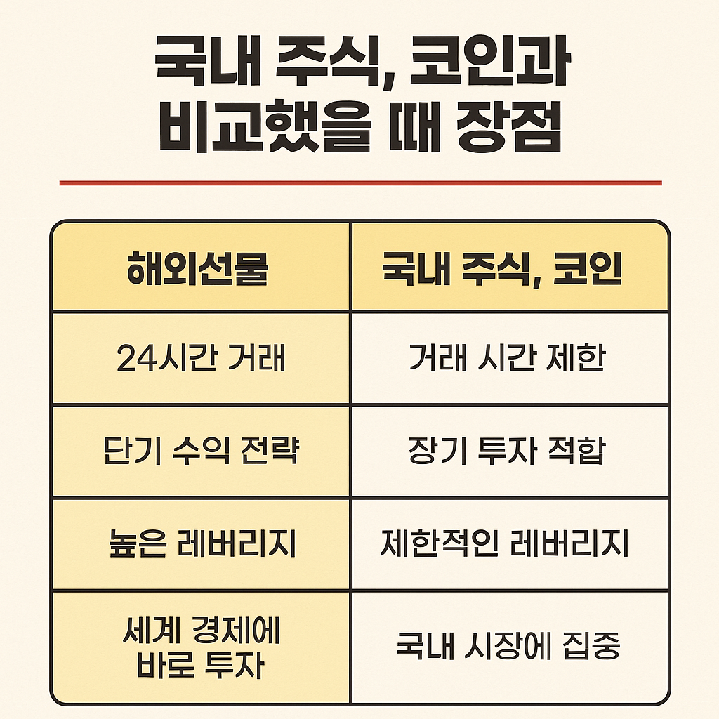 | 구분 | 해외선물거래 | 국내 주식/코인 |