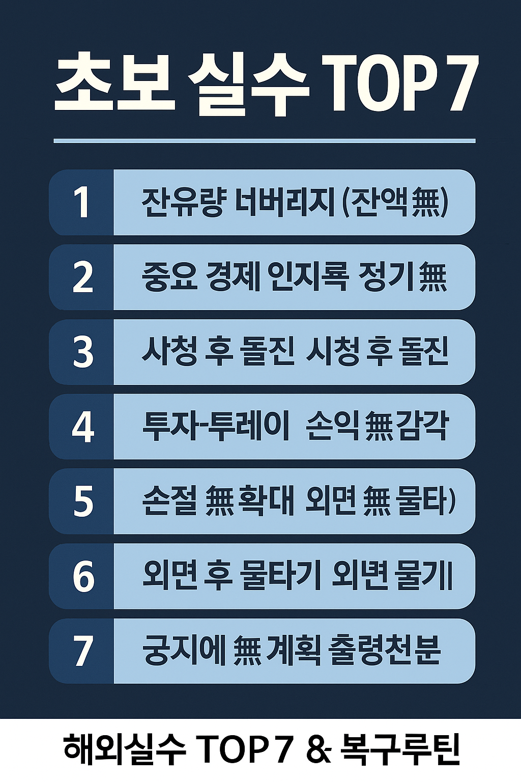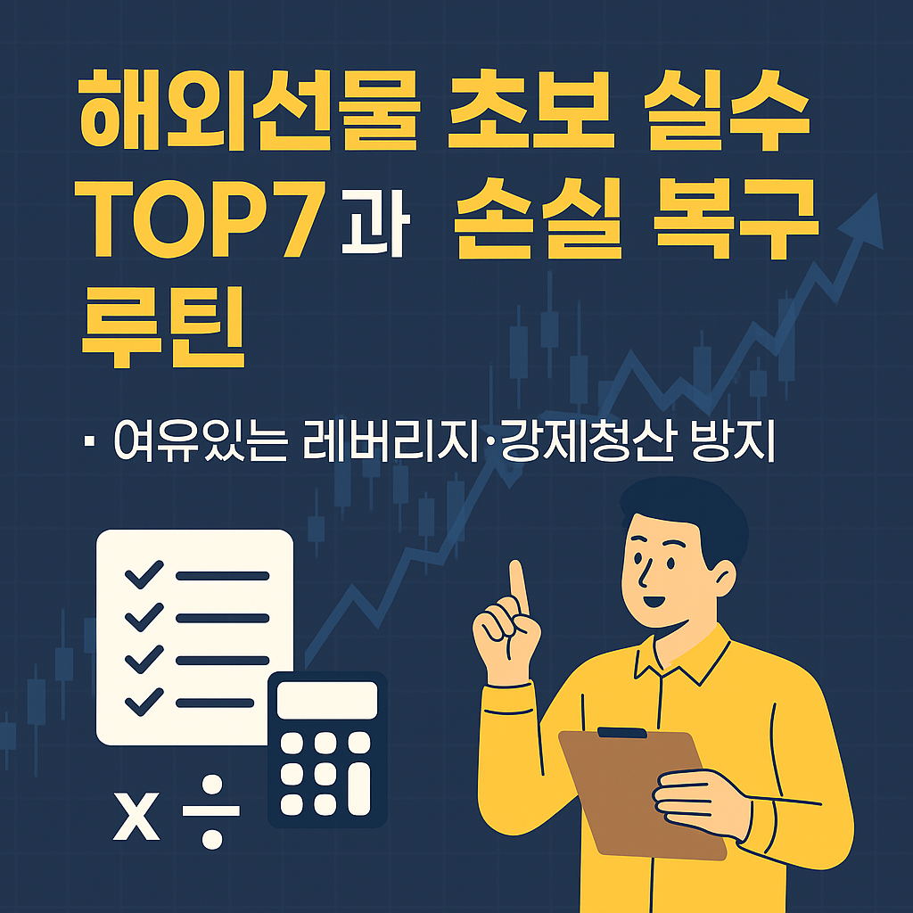 해외선물 초보 실수 TOP7을 사례로 정리하고, 손절 ·손익비 ·포지션 사이징 기반 복구 루틴을 제시합니다. 여유 있는 레버리지로 강제청산(마진콜) 위험을 낮추는 방법.