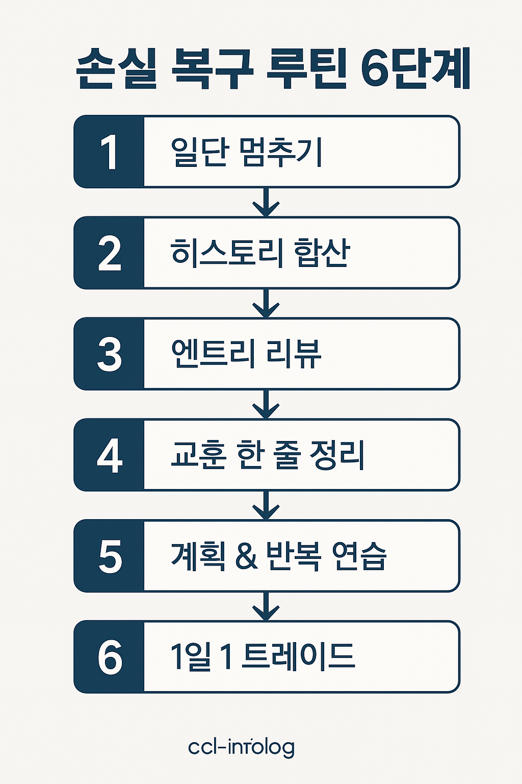 - 진입 이유 · 손익비 · 결과 · 심리 기록 → 매주 TOP3 실수 제거.