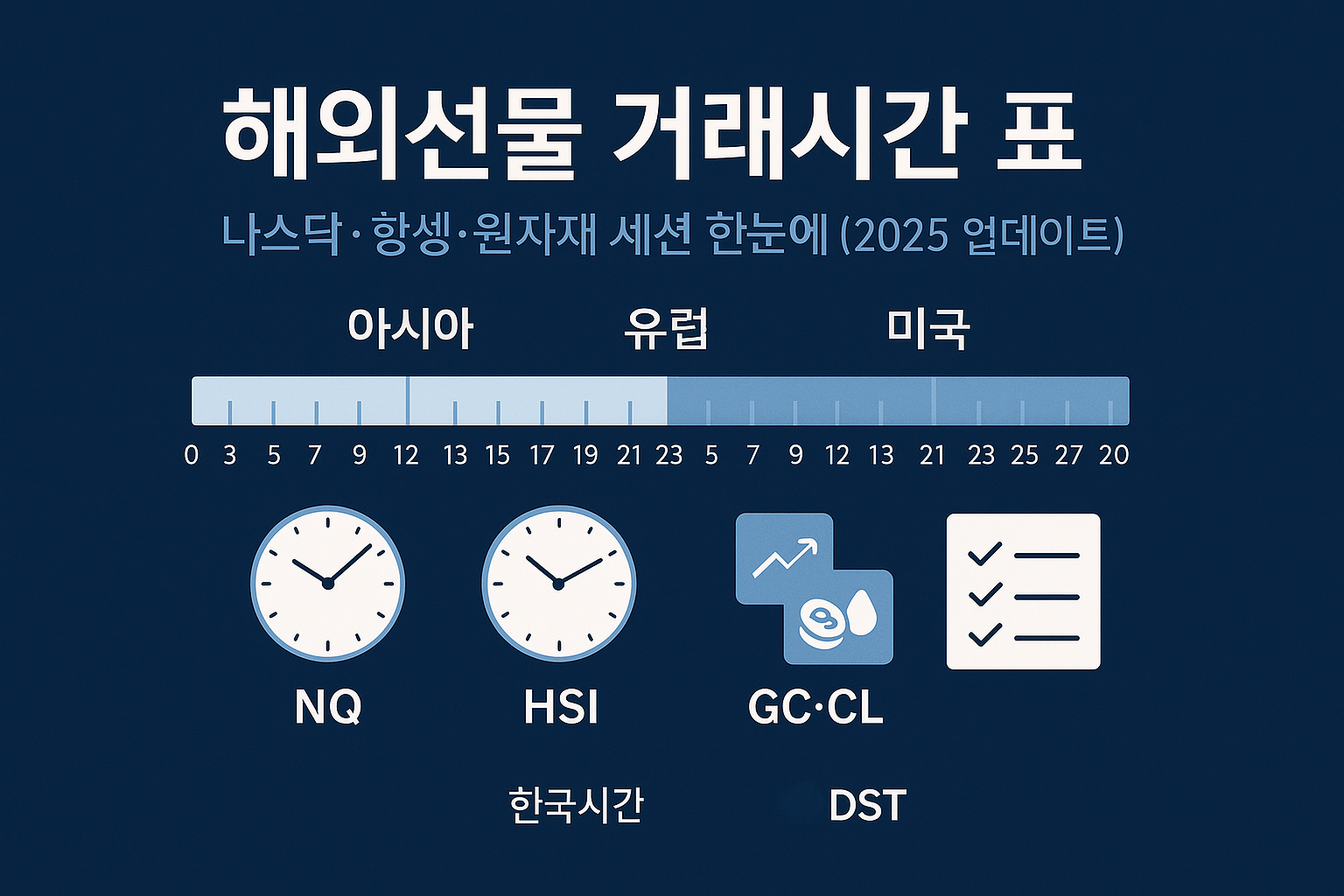 해외선물 거래시간 표ㅣ나스닥 · 항셍 · 원자재 세션 한눈에 (2025 업데이트) 본문