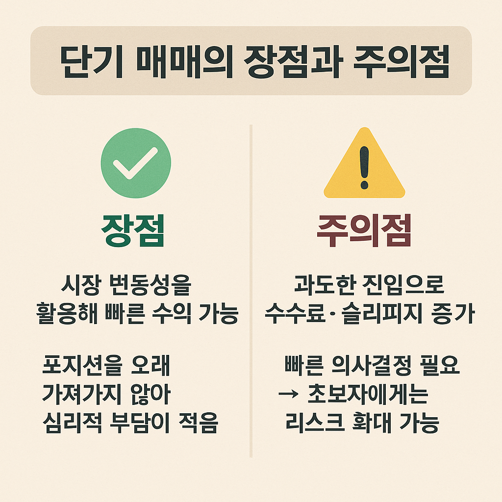 - 빠른 의사결정 필요 → 초보자에게는 리스크 확대 가능