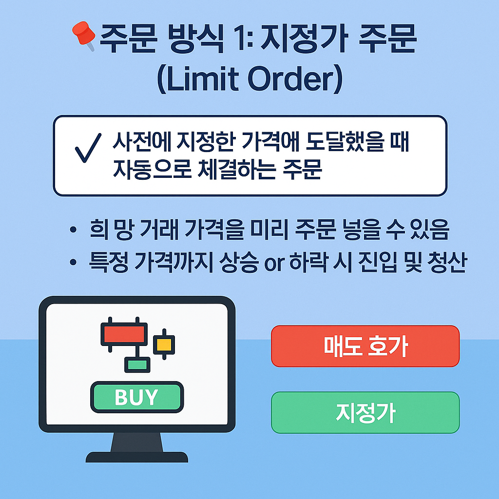 👉 어떤 방식으로 주문을 넣느냐에 따라 체결 가격, 리스크 관리, 심리적 안정감이 모두 달라집니다.
