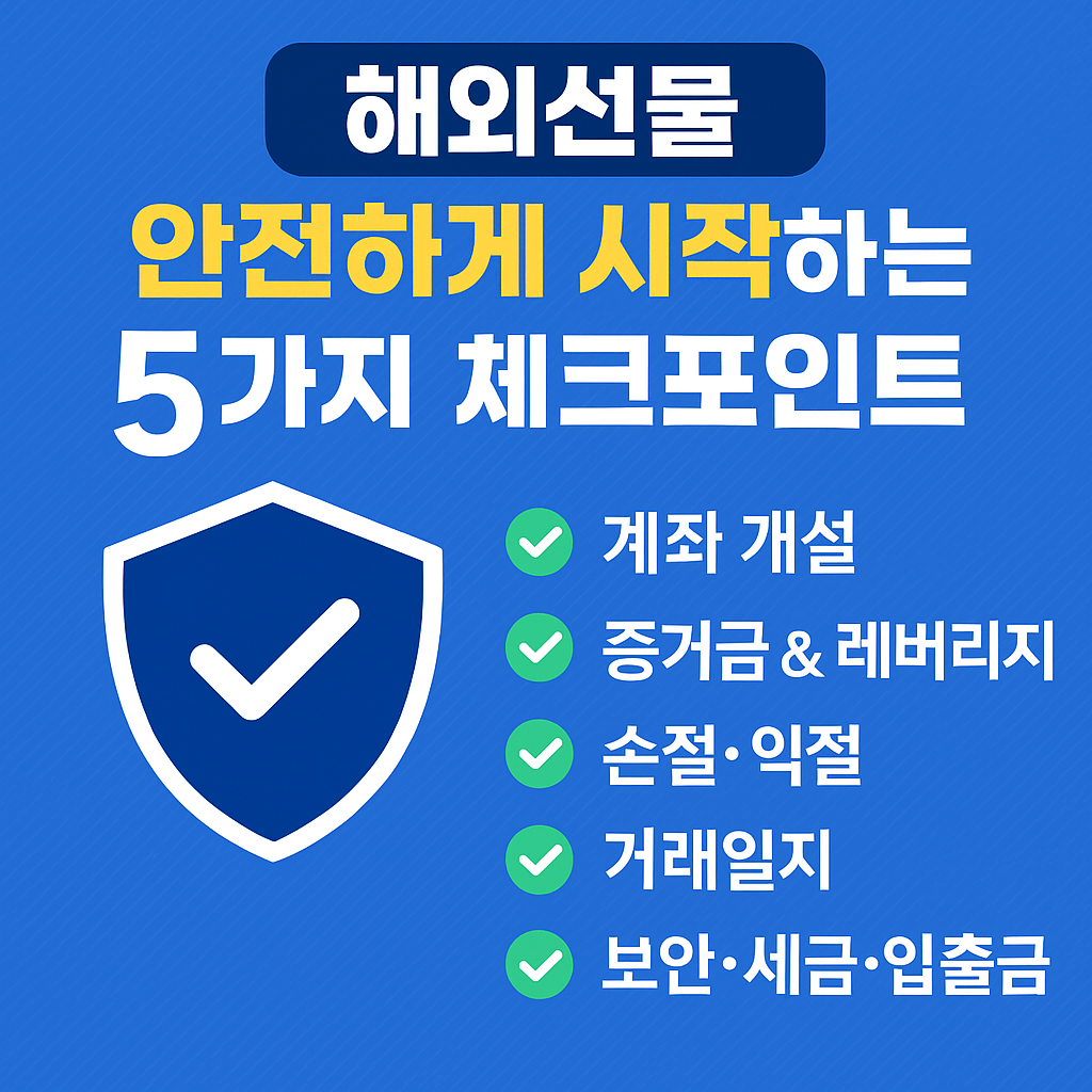 👉해외선물을 시작하려는 분들은 지금 당장 계좌, 증거금, 리스크, 기록, 보안 5가지를 점검해 보세요.