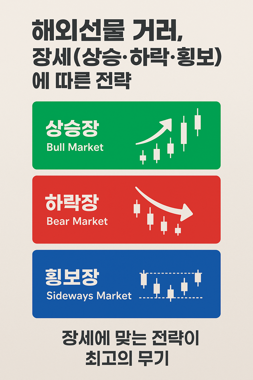 오늘은 상승, 하락, 횡보 3가지 장세별 해외선물 전략을 정리해보겠습니다.