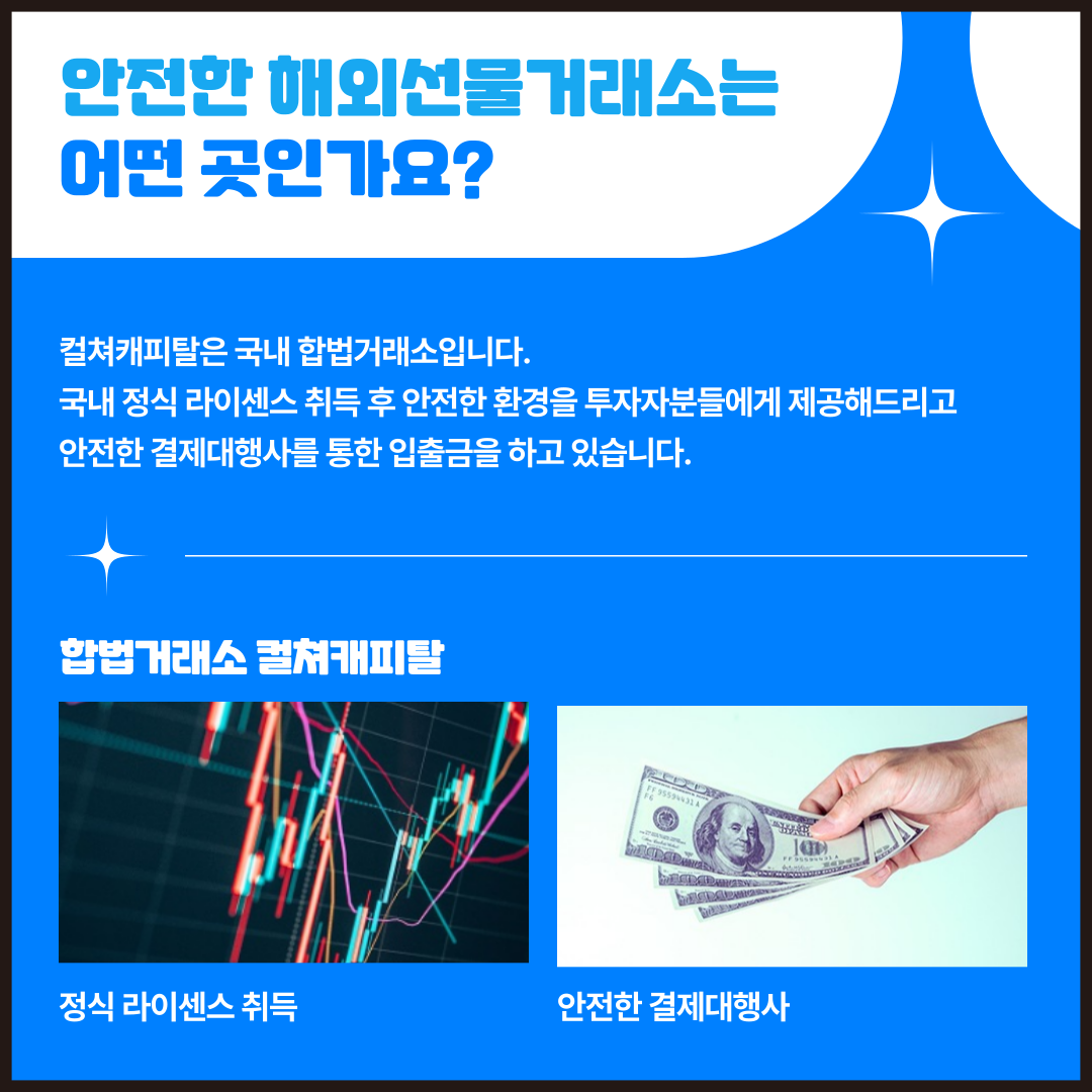 해외선물거래는 안전한 해외선물거래소인 컬쳐캐피탈에서 하시는게