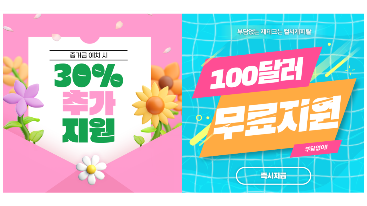 따라서 컬처캐피탈은 증거금에 대한 부담을 덜어드리기 위해 100달러를 무료로 지원해 드리고