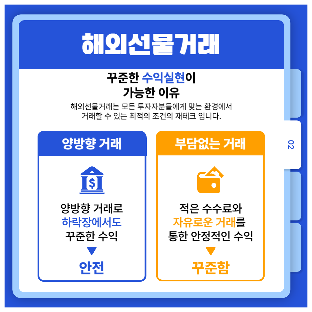 해외선물거래는 빠른 수익실현과 꾸준한 수익이 가능합니다.