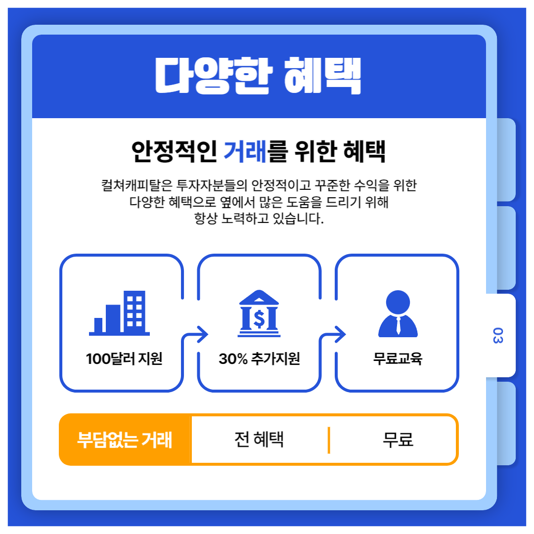 컬쳐캐피탈은 다양한 혜택을 통해 보다 안전하고 안정적인 거래를 할 수 있도록
