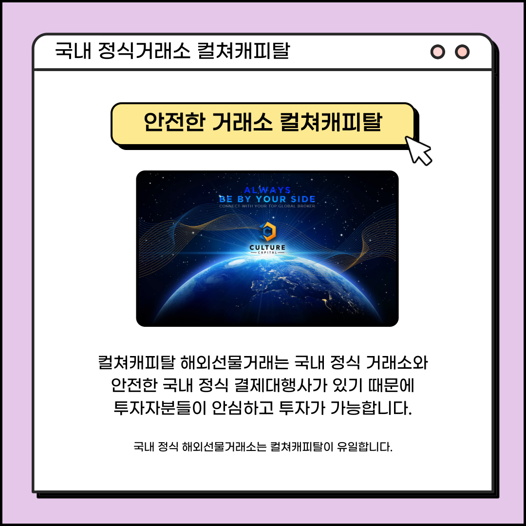 안전한 거래소 국내 정식 해외선물거래소 컬쳐캐피탈!