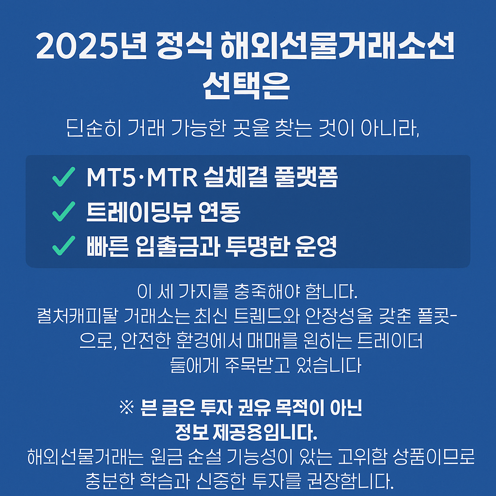 ✅ 2025년 정식 해외선물거래소 트렌드 & 컬쳐캐피탈 특징
