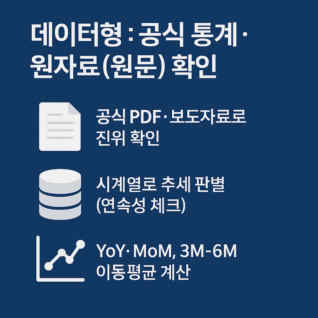 - 고용, 물가, 소비, 제조업 지표의 공식 배포 PDF / 보도자료 확인
