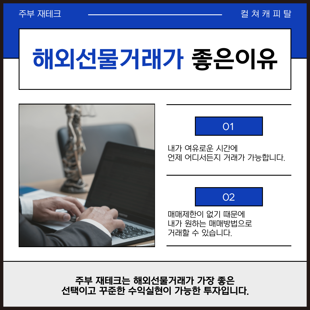 컬쳐캐피탈 거래소에서 투자하는 해외선물거래가 가장 안전한 재테크입니다.