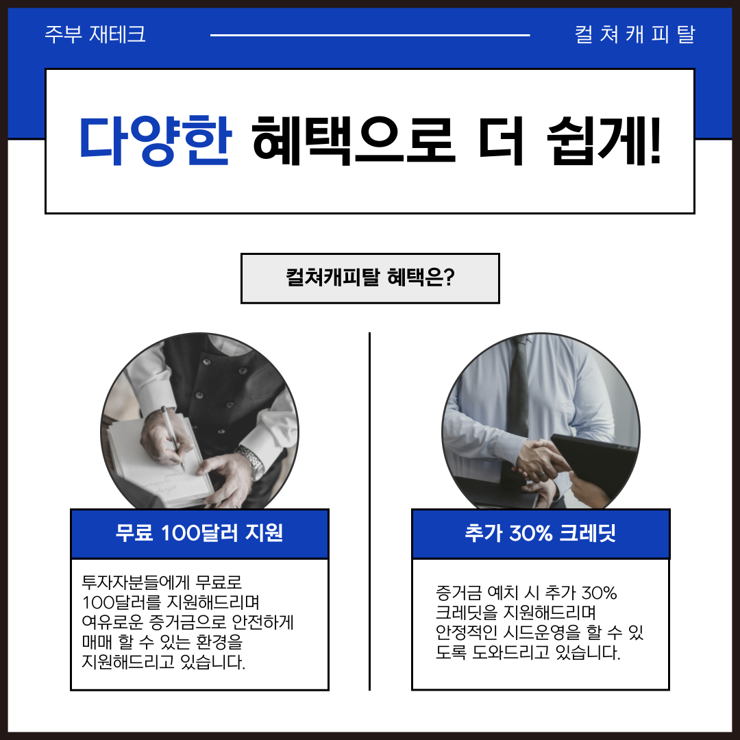 컬쳐캐피탈은 투자자분들을 위해 다양한 혜택으로